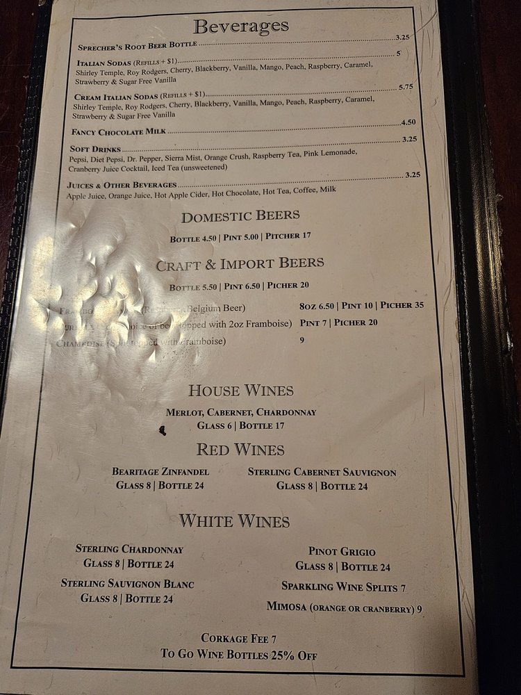 Jumbo raviolis, topped with marinara sauce and mozzarella cheese, baked until bubbling, served with homemade garlic bread.